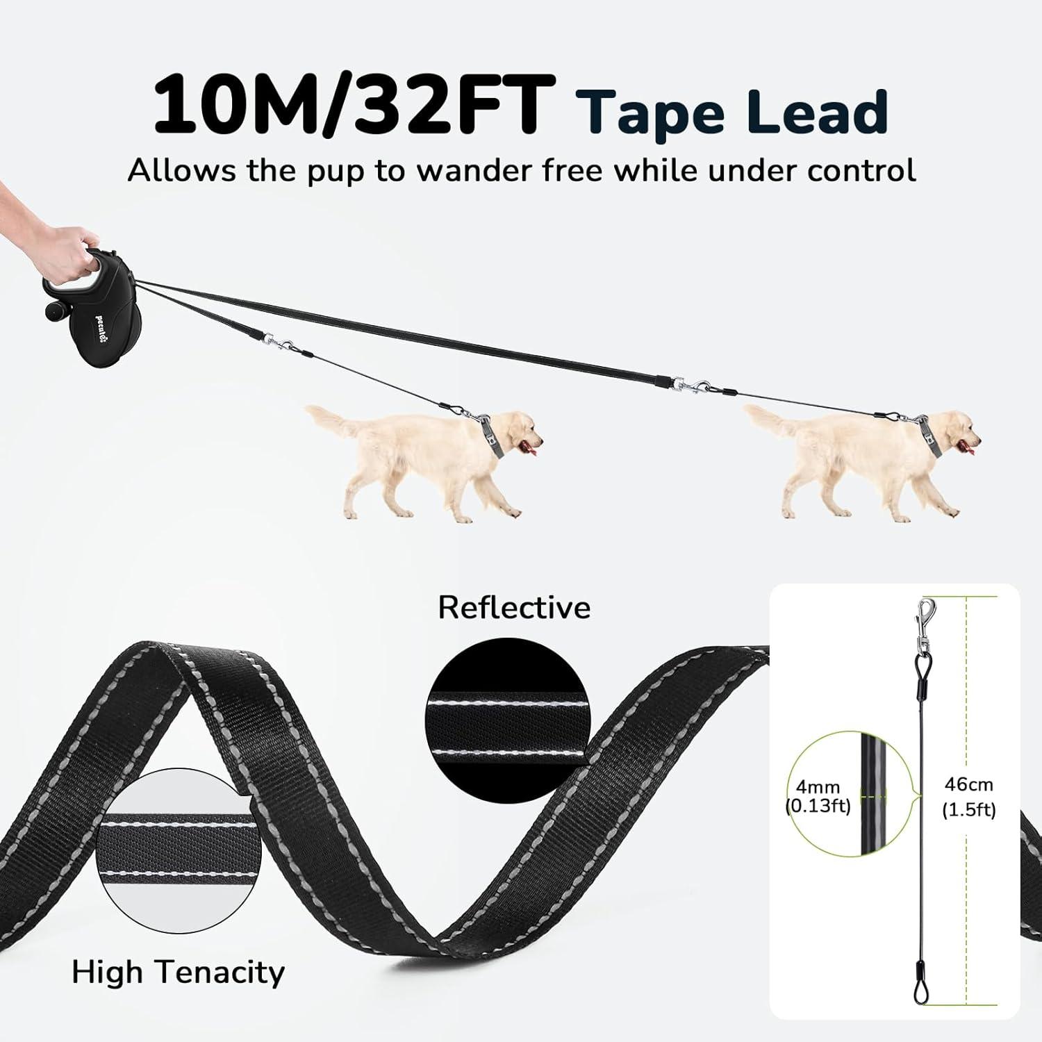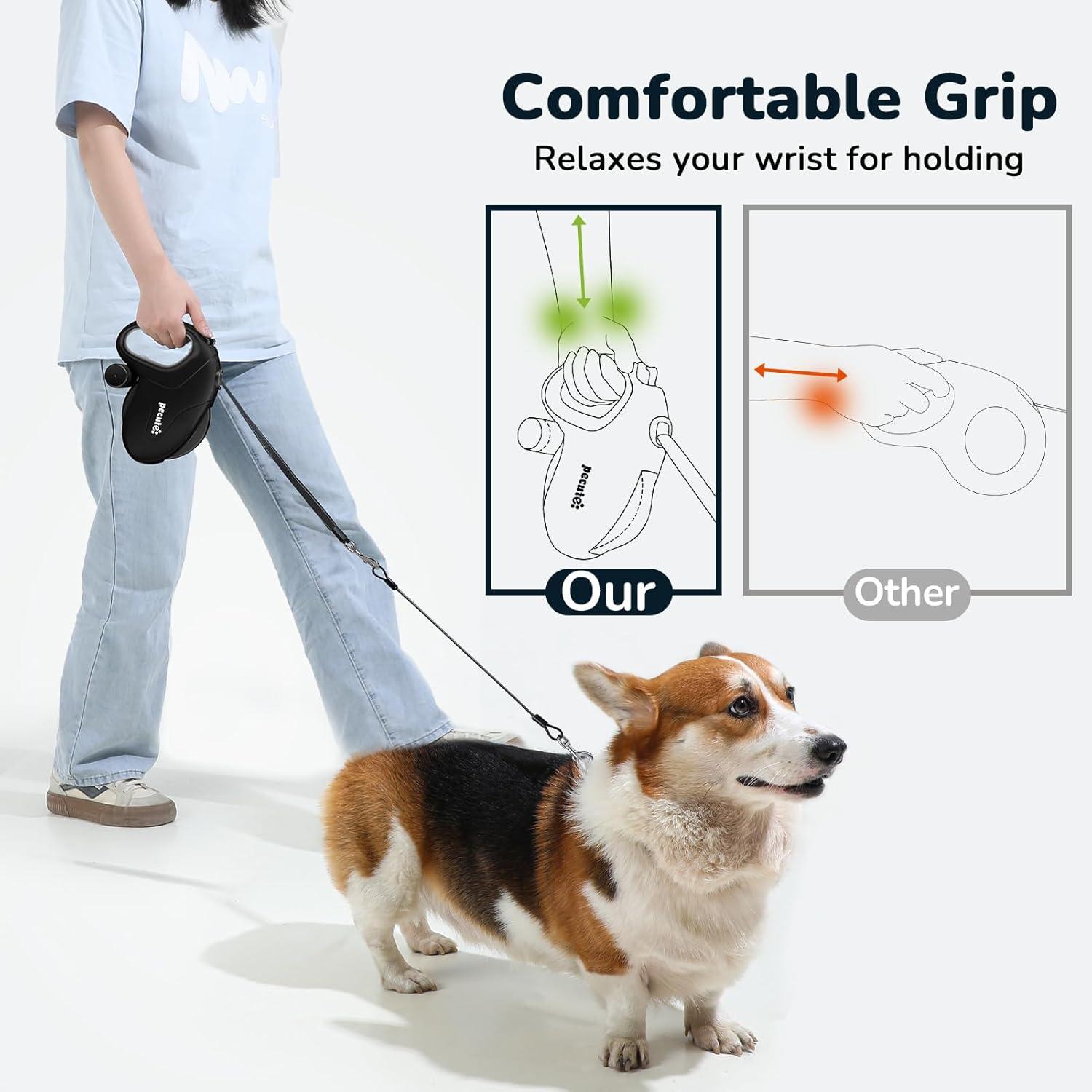 【Enhanced 26ft Long Reflective Leash】Give your dog more freedom to explore with this 26ft retractable leash. Made with upgraded, reflective materials, it features high-visibility stitching for added safety during low-light walks, while also delivering enhanced strength and durability you can rely on every day.