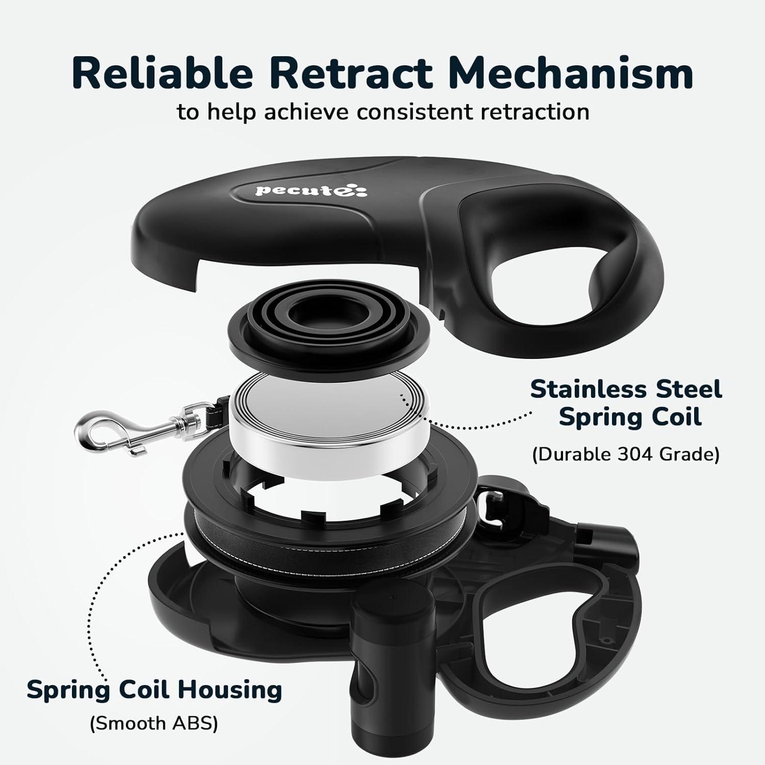 【Built for Dogs up to 110 lbs — 50,000+ Smooth Cycles】This heavy-duty retractable dog leash features an upgraded 304 stainless steel spring coil, ensuring smooth retraction and enhanced control for dogs up to 50 KG. Built for strength and durability, ideal for daily walks and outdoor adventures.