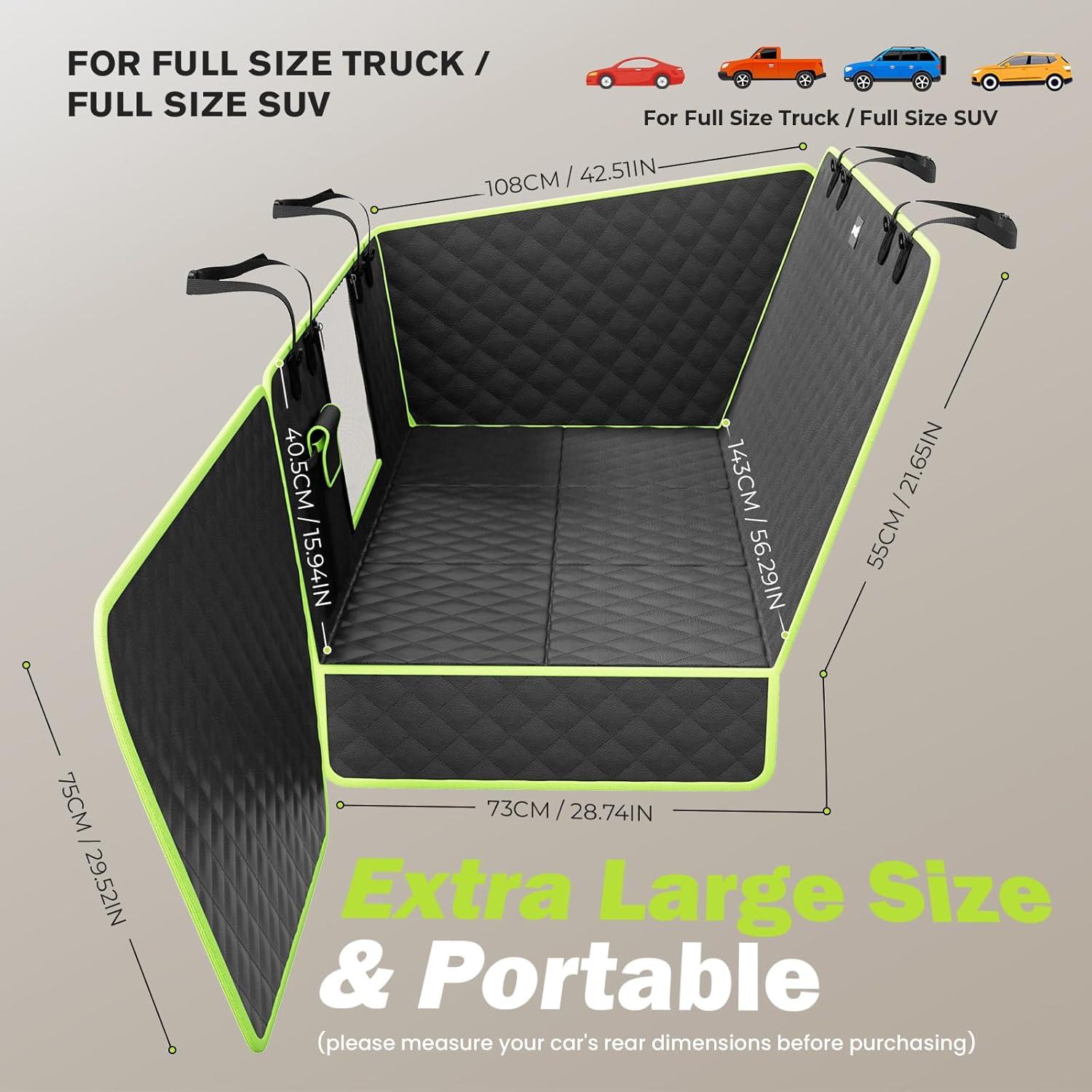 ใ€๐„๐ฑ๐ญ๐ซ๐š ๐‹๐š๐ซ๐ ๐ž ๐’๐ข๐ณ๐ž ๐Ÿ๐จ๐ซ ๐…๐ฎ๐ฅ๐ฅ ๐’๐ข๐ณ๐ž ๐“๐ซ๐ฎ๐œ๐ค/๐’๐”๐•ใ€‘The back seat extender for dogs is 57.06*28.74 inches/145*73 cm, can completely cover the backseat area, prevents your furry friend from sliding into the foot space when braking sharply, which also makes more room for your dog to move around, allowing them to walk or stretch their limbs with ease.
